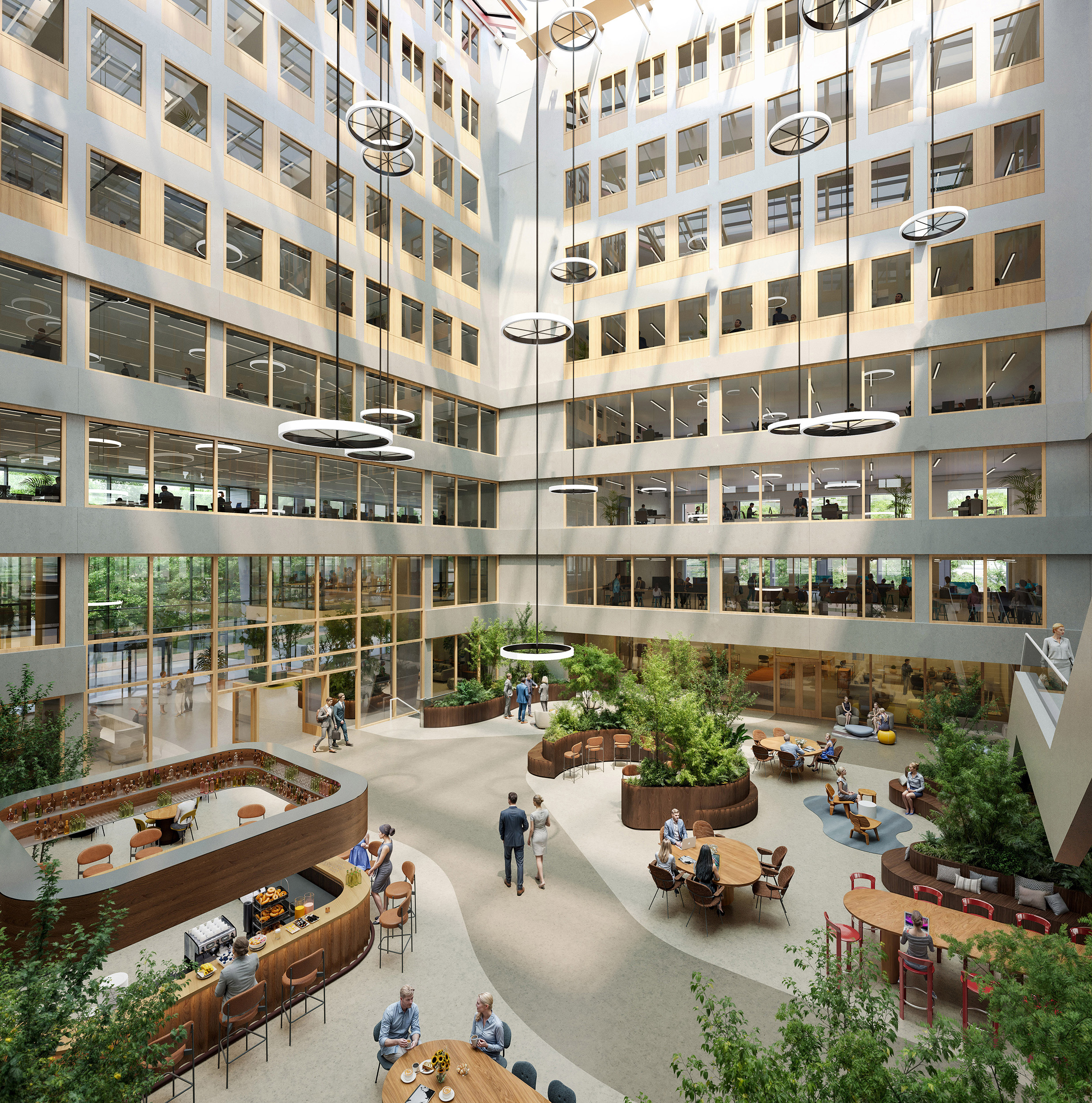 Alongside state-of-the-art Paris-Proof office floors, Utrecht Central Plaza will feature commercial amenities on the ground floor, such as a coffee bar and various retail spaces. The stunning atrium fosters collaboration and interaction among its users. This not only draws people into the area, but also makes for a warm, lively welcome to those heading to the office floors or simply enjoying a break.